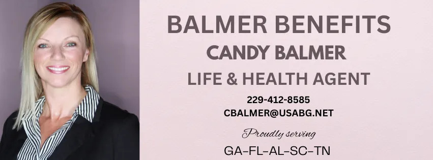 Offered by Candy Balmer, Licensed Insurance Producer Licensed in: AL (Lic #3002087535), FL (Lic #W893941), GA (Lic #2803325), SC (Lic #7757526), TN (Lic #3002110763) Disclaimer: Quotes and comparisons are illustrative only. Actual rates and eligibility are subject to underwriting, carrier approval, and state availability. Pricing varies by age, health, tobacco use, coverage amount, term length, and carrier. This is a solicitation for insurance. Not affiliated with or endorsed by any government agency.
